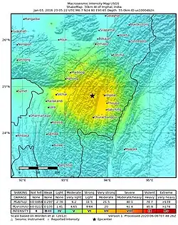 3. ^ a b c d e "M 6.7-6.9 km W of Imphal, India". United States Geological Survey. 3 January 2016. Retrieved 10 October 2024.
