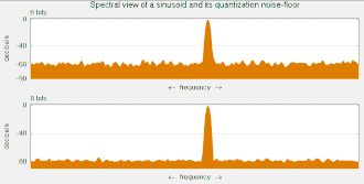 where is the number of quantization bits. For example, for a 16-bit ADC, the quantization error is 96.3 dB below the maximum level.