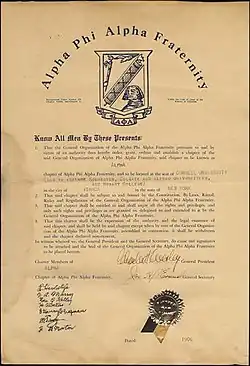 - ^ a b D'Andrea, Theresa (November 5, 2005). "ΑΦΑ Centennial Pilgrimage to Cornell University". ChronicleOnline. Cornell News Service. Archived from the original on November 8, 2005. Retrieved June 12, 2007.