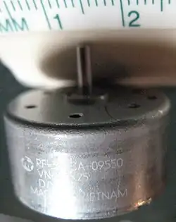 A tiny five-segment commutator less than 2 mm in diameter, on a direct-current motor in a toy radio-control ZipZaps car