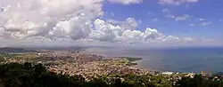 The Gulf of Paria (/ˈpæriə/ PARR-ee-ə;[1] Spanish: Golfo de Paria) is a 7,800 km2 (3,000 sq mi) shallow (180 metres (591 ft) at its deepest) semi-enclosed inland sea located between the island of Trinidad and the east coast of Venezuela. It separates the two countries by as little as 15 kilometres (9.3 mi; 8.1 nmi) at its narrowest and 120 kilometres (75 mi; 65 nmi) at its widest points. The tides within the Gulf are semi-diurnal in nature with a range of approximately 1 metre (3 ft 3 in).[2] The Gulf of Paria is considered to be one of the best natural harbors on the Atlantic coast of the Americas. The jurisdiction of the Gulf of Paria is split between Trinidad and Venezuela with Trinidad having control over approximately 2,940 km2 (1,140 sq mi) (37.7%) and Venezuela the remainder (62.3%).[3]