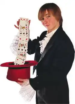 • Production: The magician produces something from nothing—a rabbit from an empty hat, a fan of cards from thin air, a shower of coins from an empty bucket, a dove from a pan, or the magician himself or herself, appearing in a puff of smoke on an empty stage—all of these effects are productions.