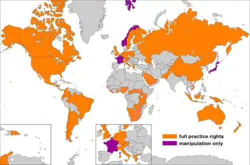 61. ^ "International Practice Rights Map". American Osteopathic Association. Archived from the original on 2016-08-19. Retrieved 1 July 2012.
