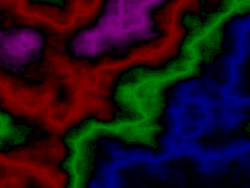 Let be a multi-frequency noise function of two variables (e.g., a Perlin noise function). Let each color component at the pixel be a linear function of the expression . Increasing the value of the constant tends to increase the steepness of the color gradients in the image.