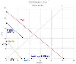 In 1962, Lockheed built the XV-4 Hummingbird for the U.S. Army. It sought to "augment" available thrust by injecting the engine exhaust into an ejector pump in the fuselage. First flying vertically in 1963, it suffered a fatal crash in 1964. It was converted into the XV-4B Hummingbird for the U.S. Air Force as a testbed for separate, vertically mounted lift engines, similar to those used in the Yakovlev Yak-38 'Forger'. That plane flew and later crashed in 1969.[2] The Ryan XV-5 Vertifan, which was also built for the U.S. Army at the same time as the Hummingbird, experimented with gas-driven lift fans. That plane used fans in the nose and each wing, covered by doors which resembled half garbage can lids when raised. However, it crashed twice, and proved to generate a disappointing amount of lift, and was difficult to transition to horizontal flight.