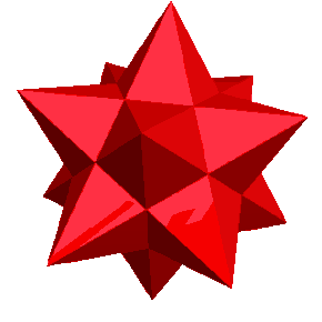In geometry, the small stellated dodecahedron is a Kepler–Poinsot polyhedron, named by Arthur Cayley, and with Schläfli symbol {5/2,5}. It is one of four nonconvex regular polyhedra. It is composed of 12 pentagrammic faces, with five pentagrams meeting at each vertex.