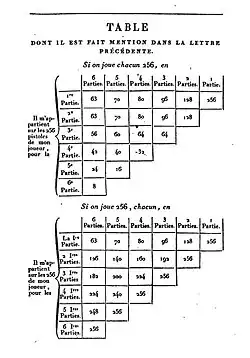 A Pascal-háromszög aritmetikai táblázatát használta a szerencsejátékok pont-problémájának megoldásához és a valószínűségszámítás fejlesztéséhez. A szerencsejátékban a pontok elosztásának problematikája a következő: ha két szerencsejátékos a játszma vége előtt szakítja meg közös megegyezéssel a játékot, hogyan lehet igazságosan elosztani a nyereséget, ha figyelembe veszik a nyerési valószínűséget mindként játékosnál a megszakítás pillanatában. Fermattal levelezett a pontok elosztásáról, s bár eltérő módszerrel, de mindketten azonos eredményre jutottak.