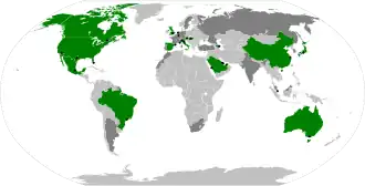 A régebben futamot rendező országok sötétszürke, a jelenlegi versenyt rendezők zöld színnel vannak jelölve