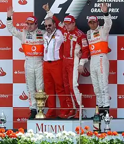 - ↑ A pezsgőzés története a Formula–1-ben Archiválva 2008. január 5-i dátummal a Wayback Machine-ben (f1gp.extra.hu)