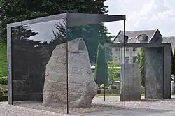 A templom előtt modern üvegvitrinekben két rúnakő áll, melyek a 10. századból származnak. A kövek az ősi skandináv mitológia és a kereszténység közötti átmenetet mutatják, és Dánia államiságának létrejöttét is jelképezik. Ezek a kövek számítanak Dánia első írásos emlékeinek.