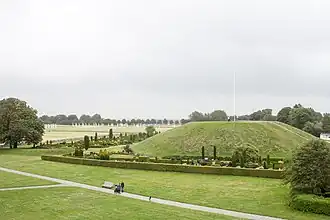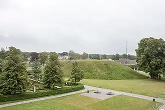 A templomtól északra és délre egy-egy sírhalom áll, bár utóbbi esetén az elnevezés kétségbe vonható, mivel a régészeti feltárások során kiderült, hogy nem szolgált temetkezési célokat.